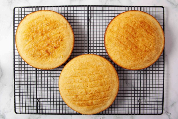 Once the cakes are baked, let them cool completely before frosting. This will ensure the icing doesn’t melt off the cake!