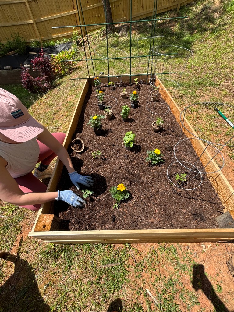 - Plants: we did tomatoes, peppers, cucumbers, basil, marigolds, and one brave broccoli
