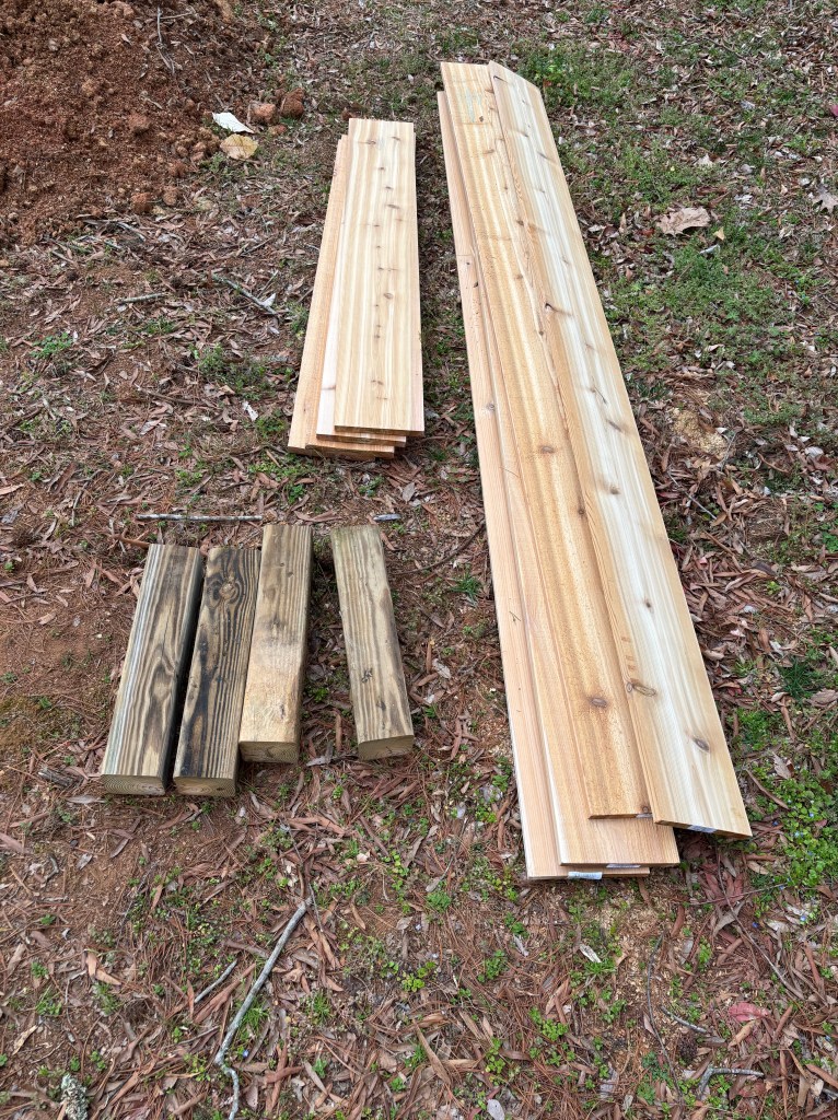 - 1 cedar post, 8′ x 4″ x 4″ (cut down for corner supports)
