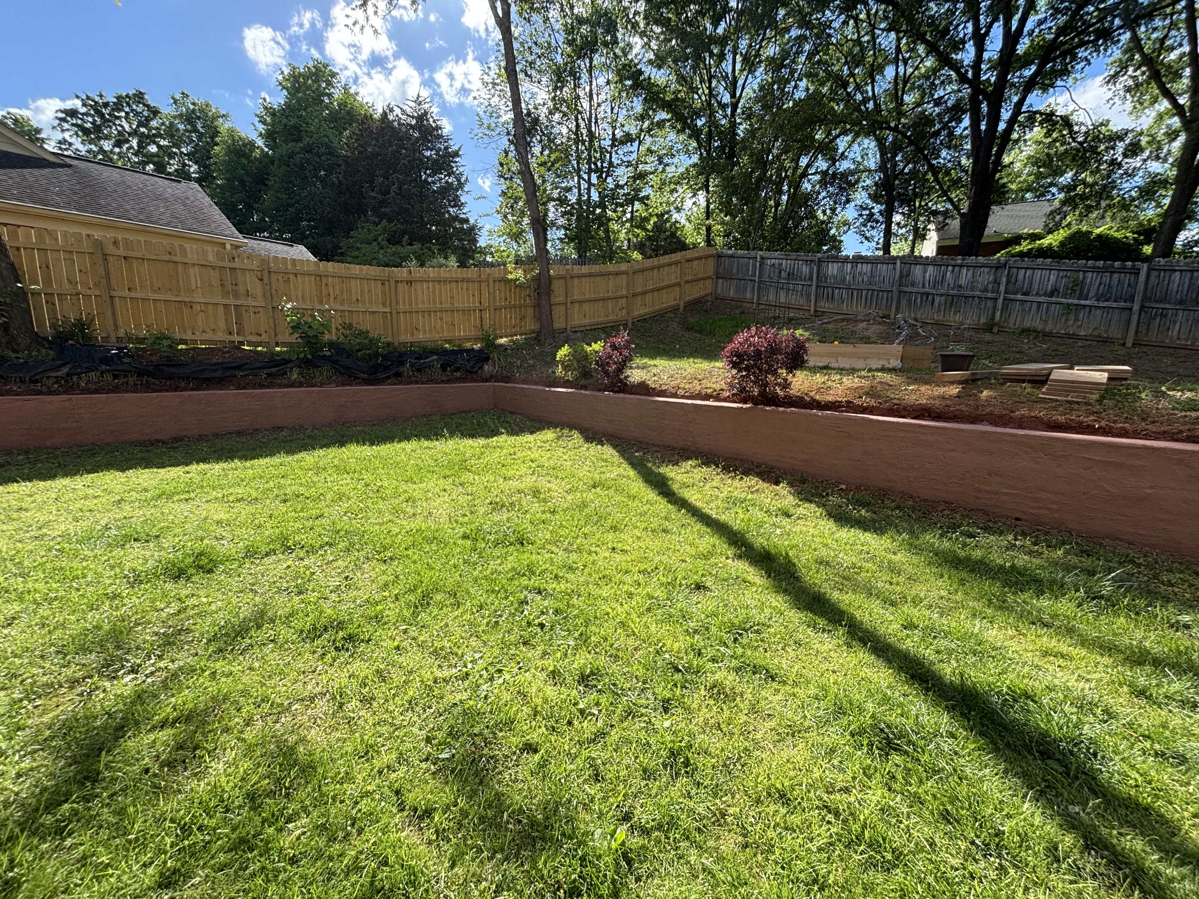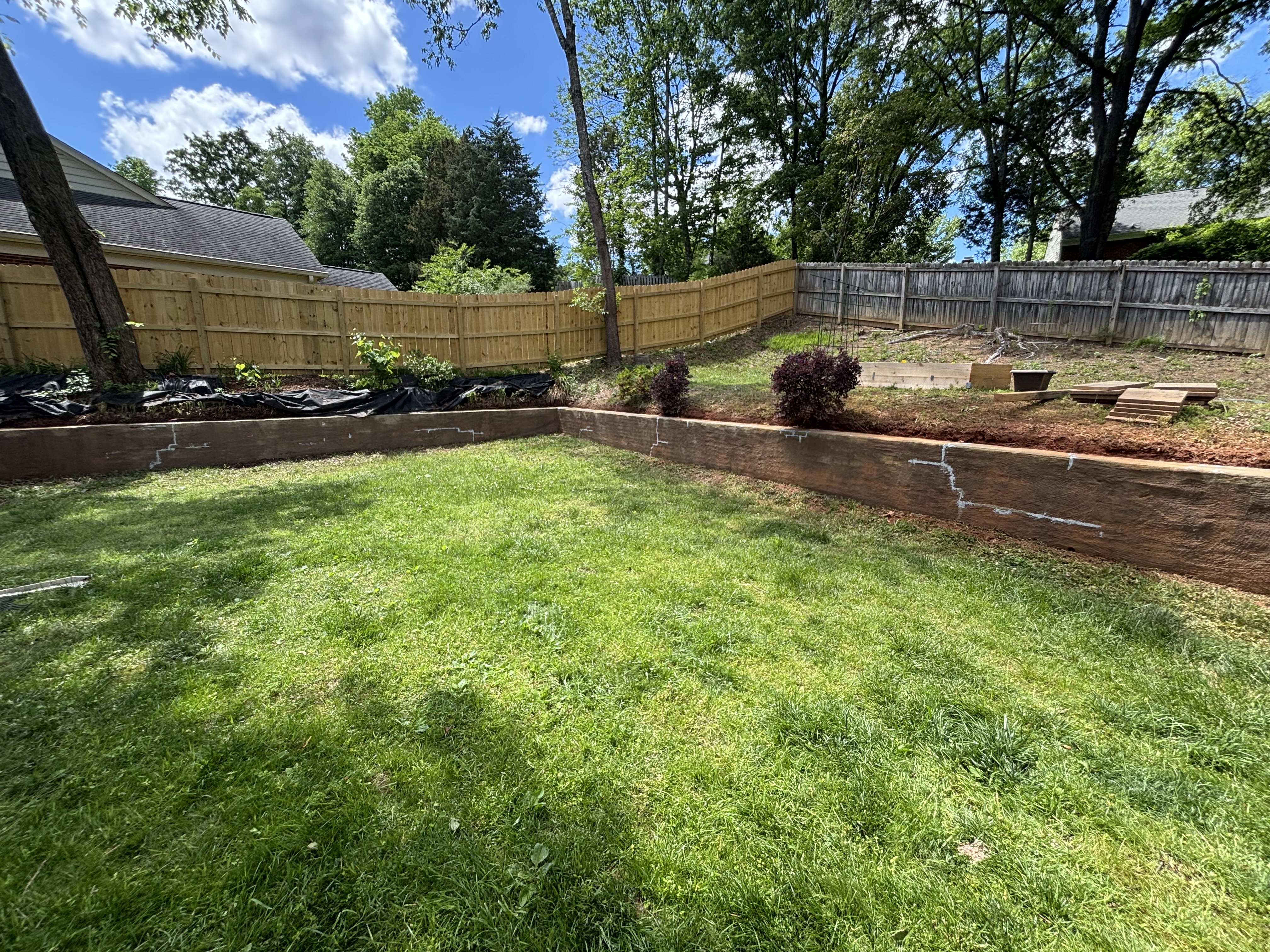 Once the trees were out, it was time to address the fence. Half of it had to come down to remove the trees anyway, and most of it was falling apart. We decided to have a new fence and gates installed professionally—especially since part of it runs along a slope. Best decision ever. If Ryan and I had tackled that ourselves, we’d probably still be working on it.